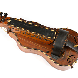 La vielle à roue est un instrument à cordes frottées par une roue en bois plutôt que par un archet, et qui se tient horizontalement sur les genoux.