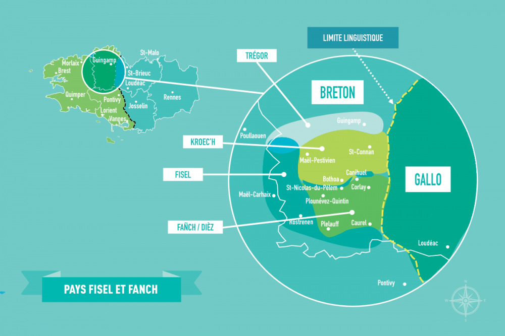 Notons que cette carte est un choix moderne et simplifié de réalités historiques et sociales beaucoup plus complexes, comme nous le montrons plus loin au sujet du pays Fañch.
